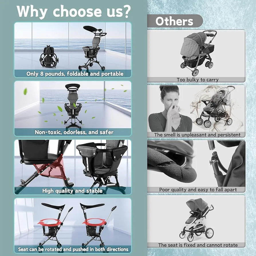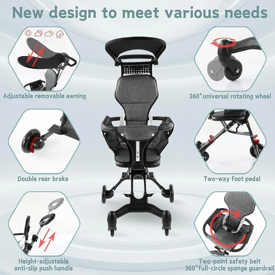 Baby Stroller,Portable Travel Stroller for Airplane with Mini Umbrella,Lightweight and Compact Stroller with 360° Two-Way Rotational Seat,Toddler Coast Rider Stroller with One Hand Easy FoldDhs. 99.00Dhs. 160.00