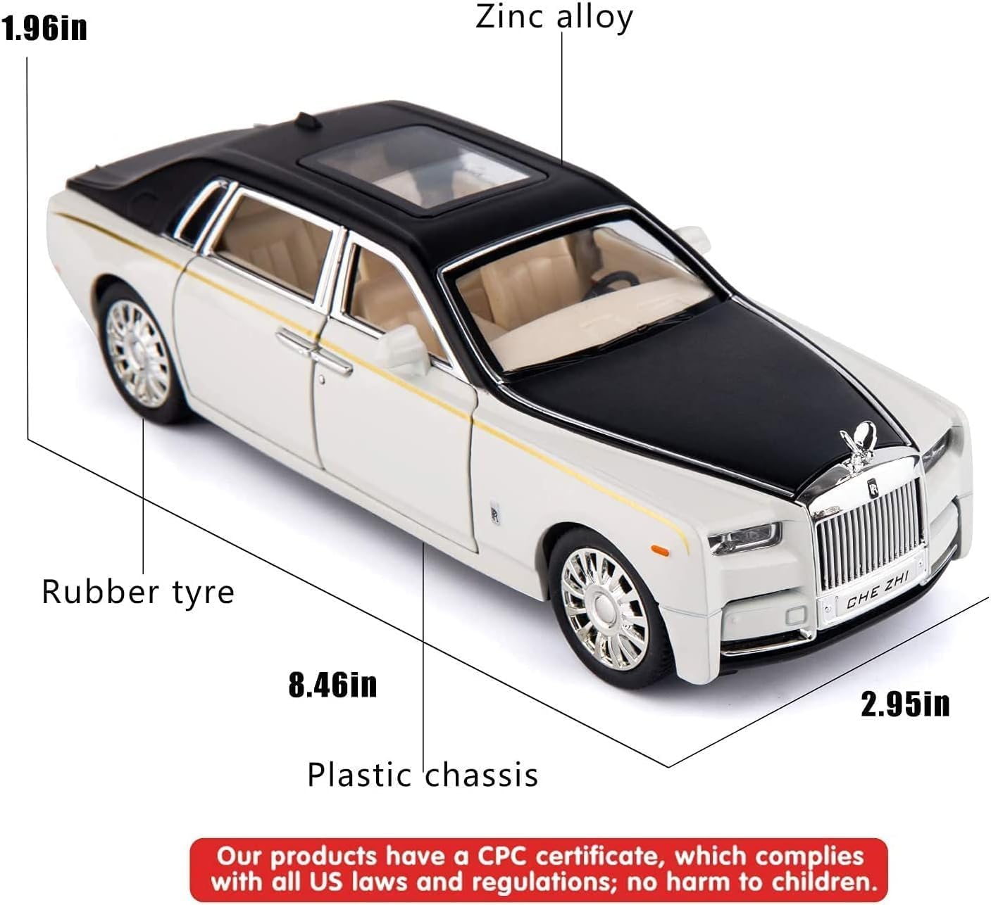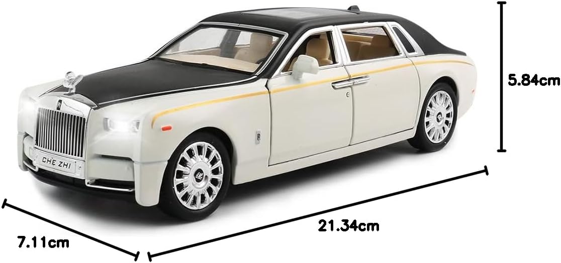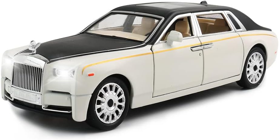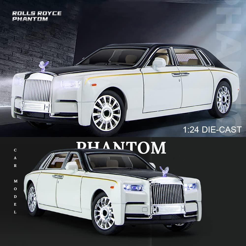 سيارة رولز رويس فانتوم موديل 1/24 من YALLABUYIT، سيارة لعبة من سبائك الزنك قابلة للسحب للخلف مع صوت وإضاءة للأطفال والأولاد والبنات. (أبيض)Dhs. 70.09