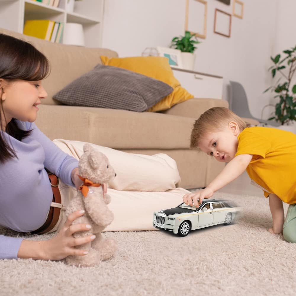 سيارة رولز رويس فانتوم موديل 1/24 من YALLABUYIT، سيارة لعبة من سبائك الزنك قابلة للسحب للخلف مع صوت وإضاءة للأطفال والأولاد والبنات. (أبيض)Dhs. 78.20