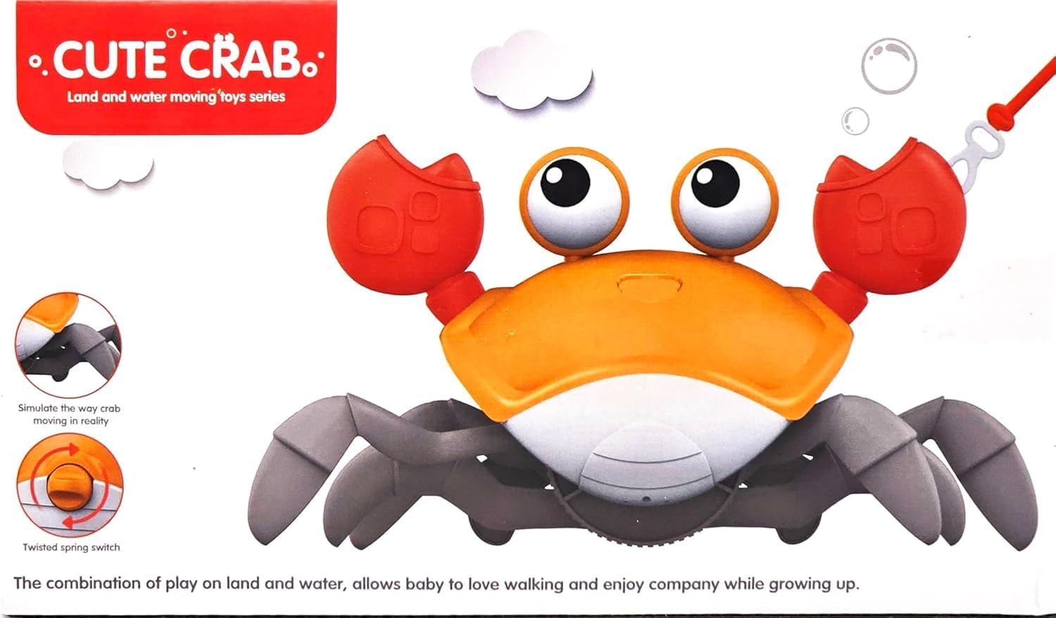 لعبة حمام سرطان البحر اللطيفة، لعبة أرض وماء متحركة مع مفتاح زنبركي وخيط سحب. رفيق مشي للأطفال بدون بطارية (برتقالي)Dhs. 38.99