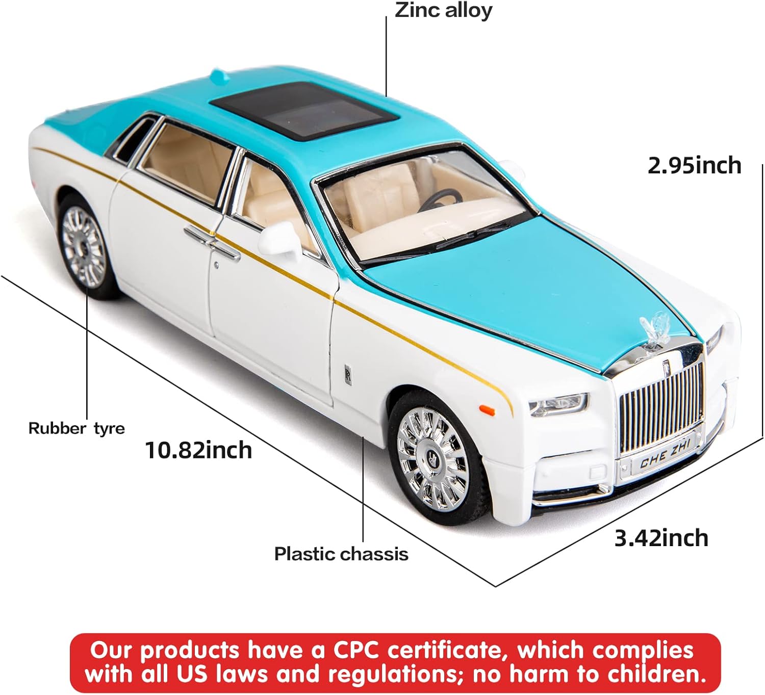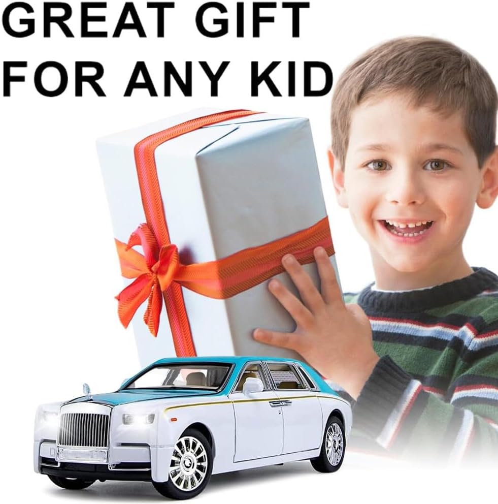 سيارة رولز رويس فانتوم موديل 1/24 من BDTCTK، لعبة سيارات مصبوبة من سبائك الزنك مع صوت وضوء للأطفال والأولاد والبنات (أزرق-أبيض)Dhs. 64.49