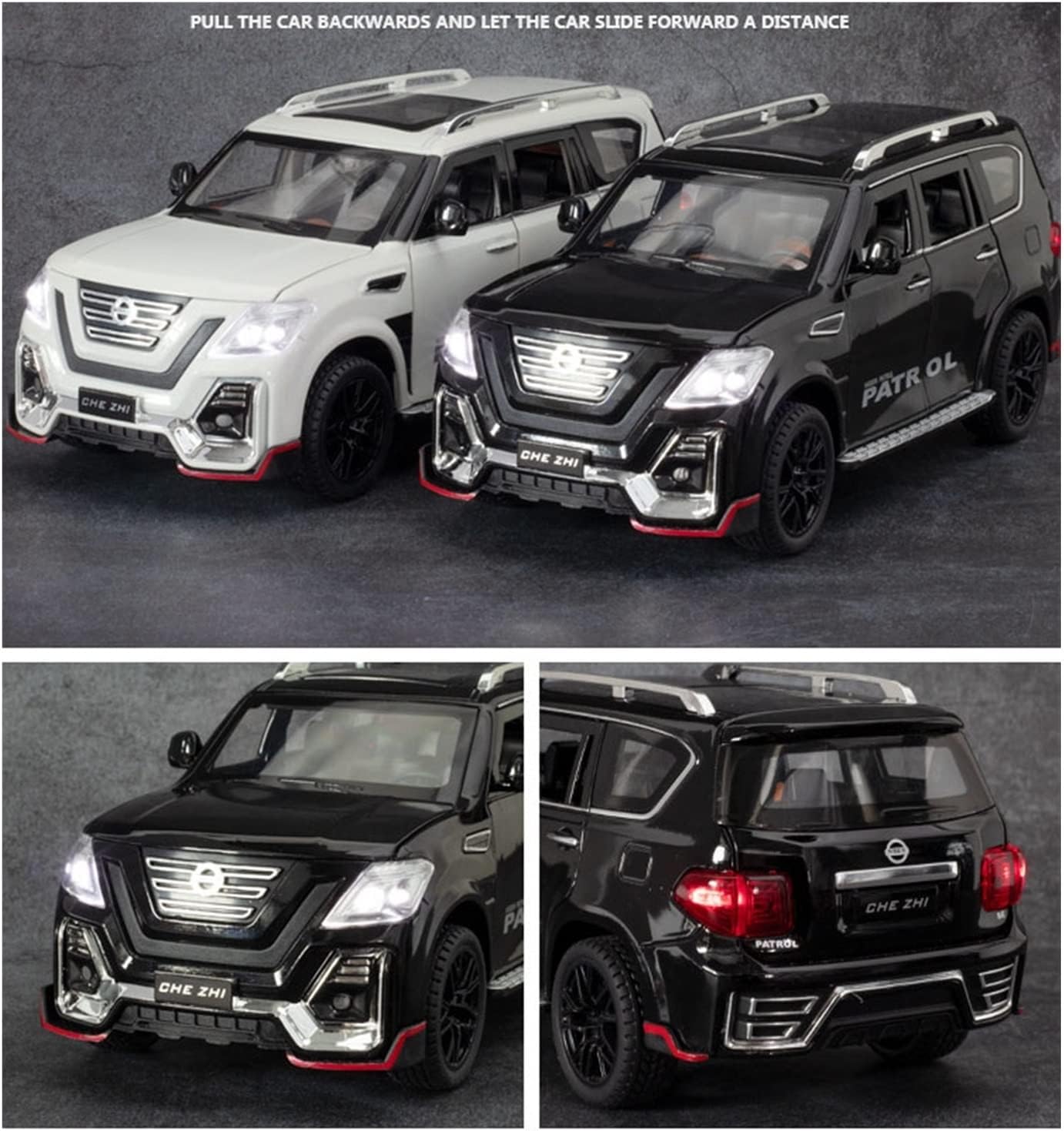 LUTPOL 1:24 لسيارة باترول SUV المعدلة لعبة سبائك معدنية مصبوبة ألعاب مركبات الطرق الوعرة نموذج الصوت والضوء مجموعة هدايا للأطفال (اللون: أسود)Dhs. 78.81