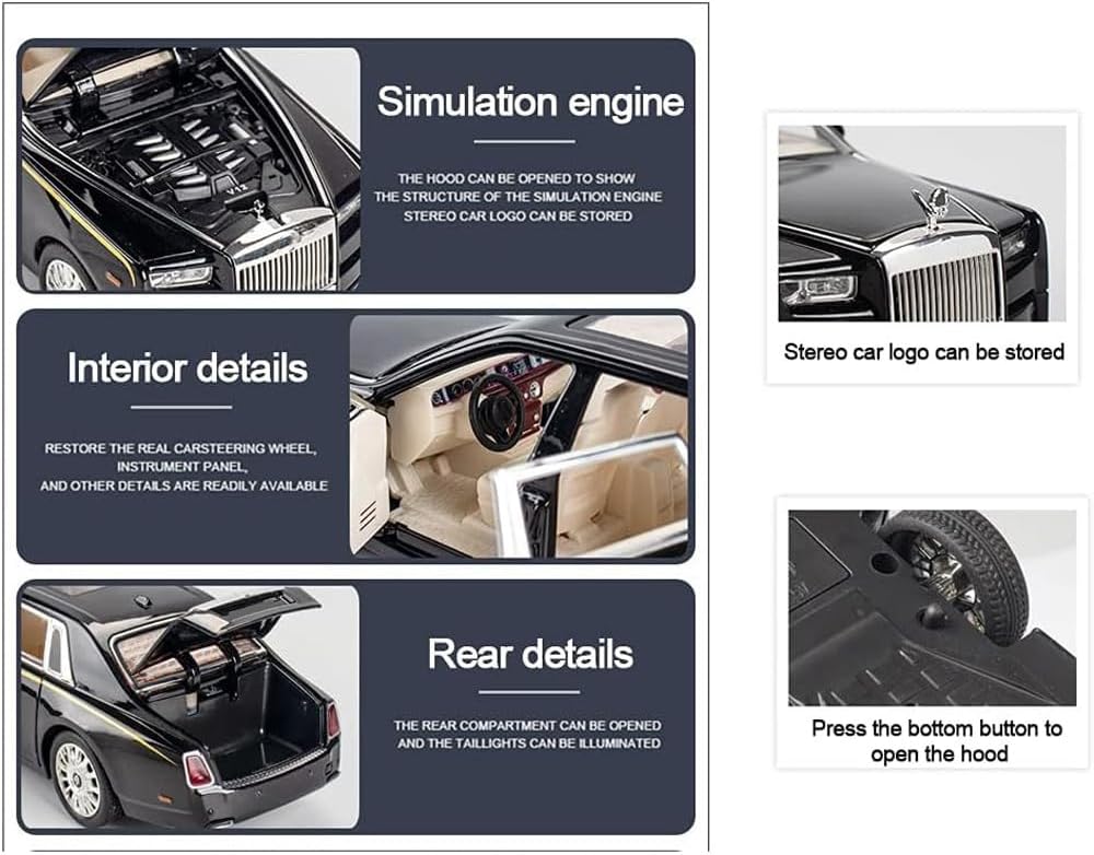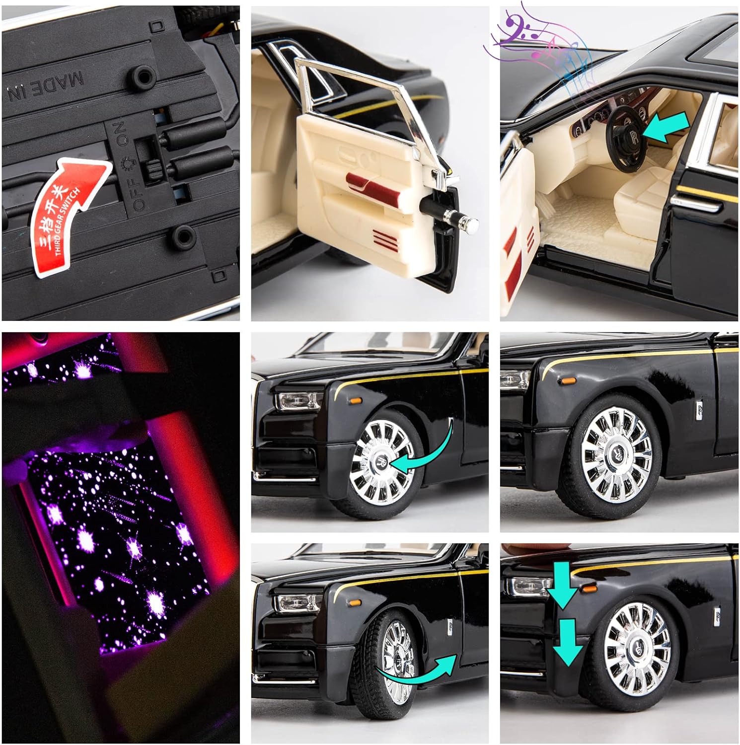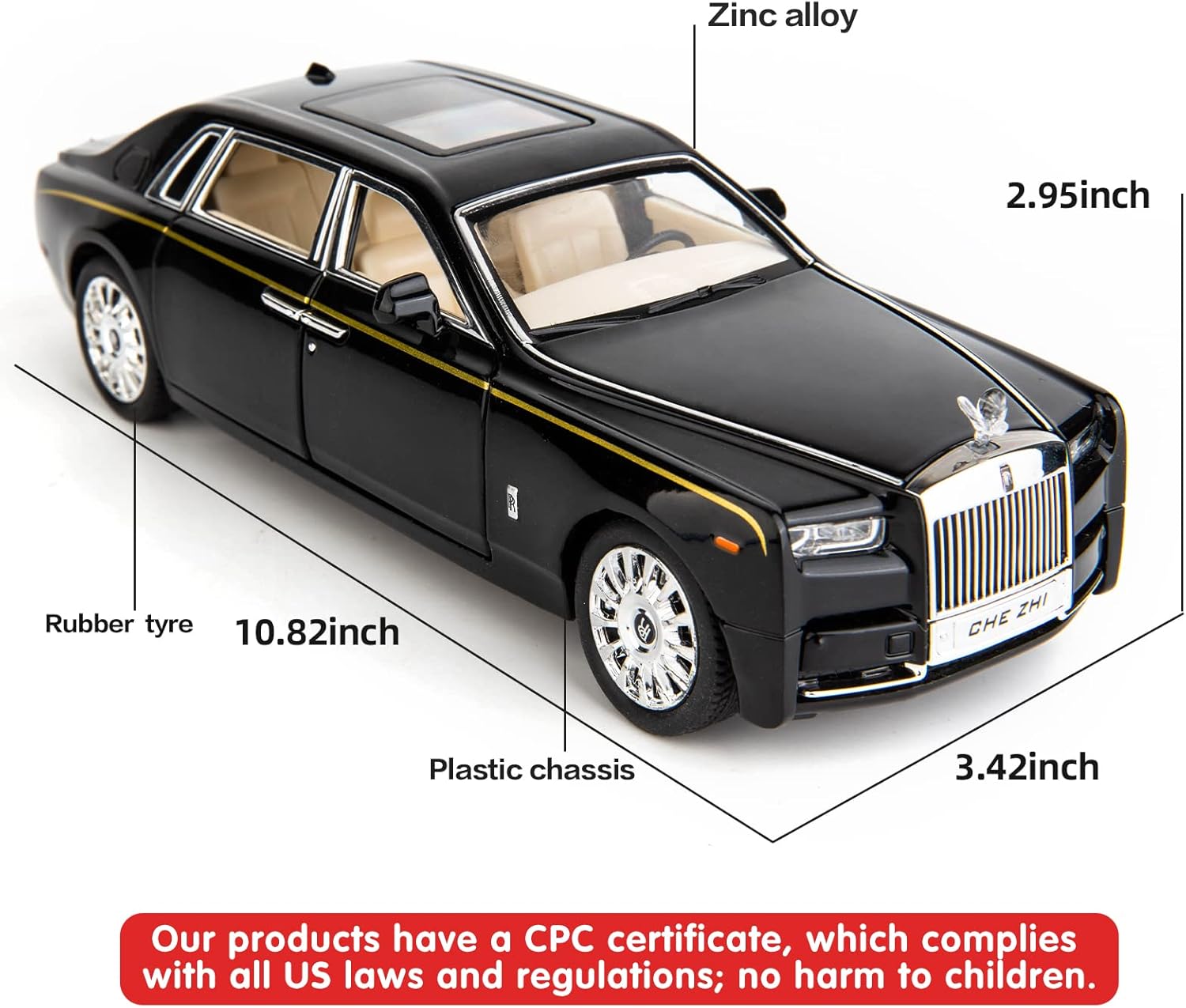 سيارة رولز رويس فانتوم موديل 1/24 من BDTCTK، لعبة سحب للخلف من سبائك الزنك، سيارات لعبة مصبوبة مع صوت وضوء للأطفال والأولاد والبنات (أسود-أسود)Dhs. 66.00