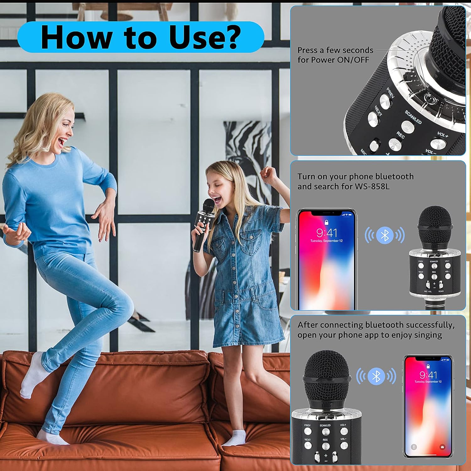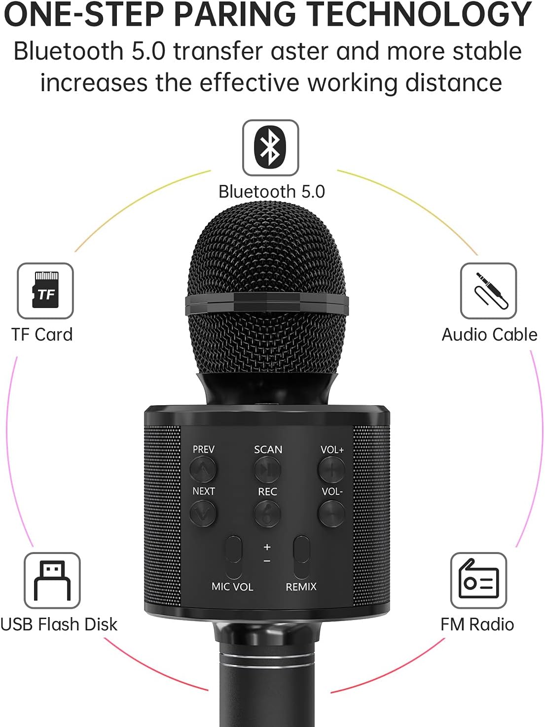 ميكروفون كاريوكي لاسلكي مع أضواء LED، ميكروفون محمول للأطفال، هدايا رائعة للأطفال والفتيات والأولاد والبالغين - ألوان متنوعةDhs. 41.00