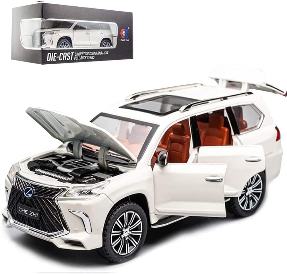 سيارة لكزس 570 فاخرة للطرق الوعرة من BDTCTK بمقياس 1/24، سيارة لعبة كبيرة من سبائك الزنك مع صوت وإضاءة كهدية للأطفال الأولاد والبنات (أبيض)Dhs. 52.00