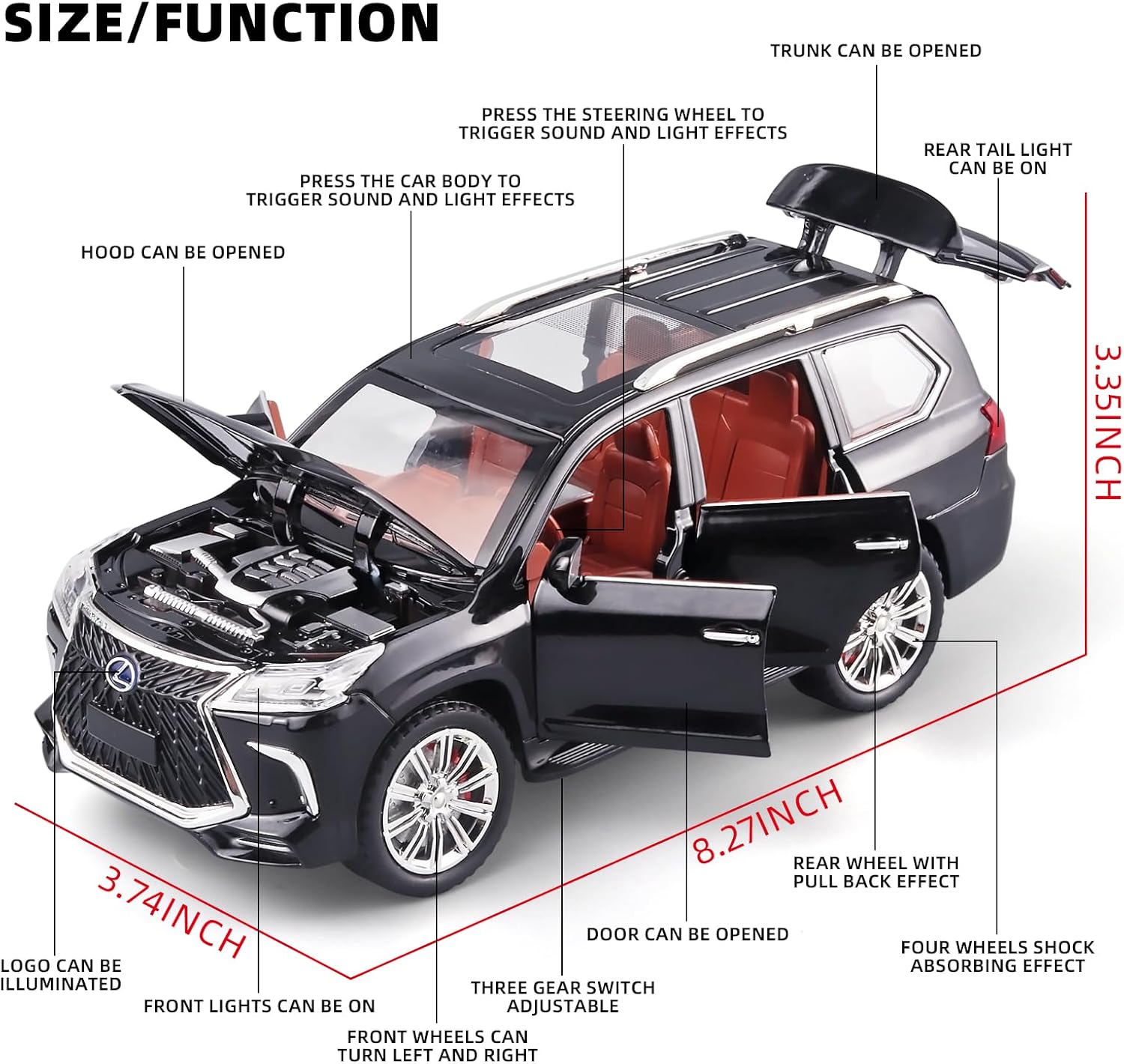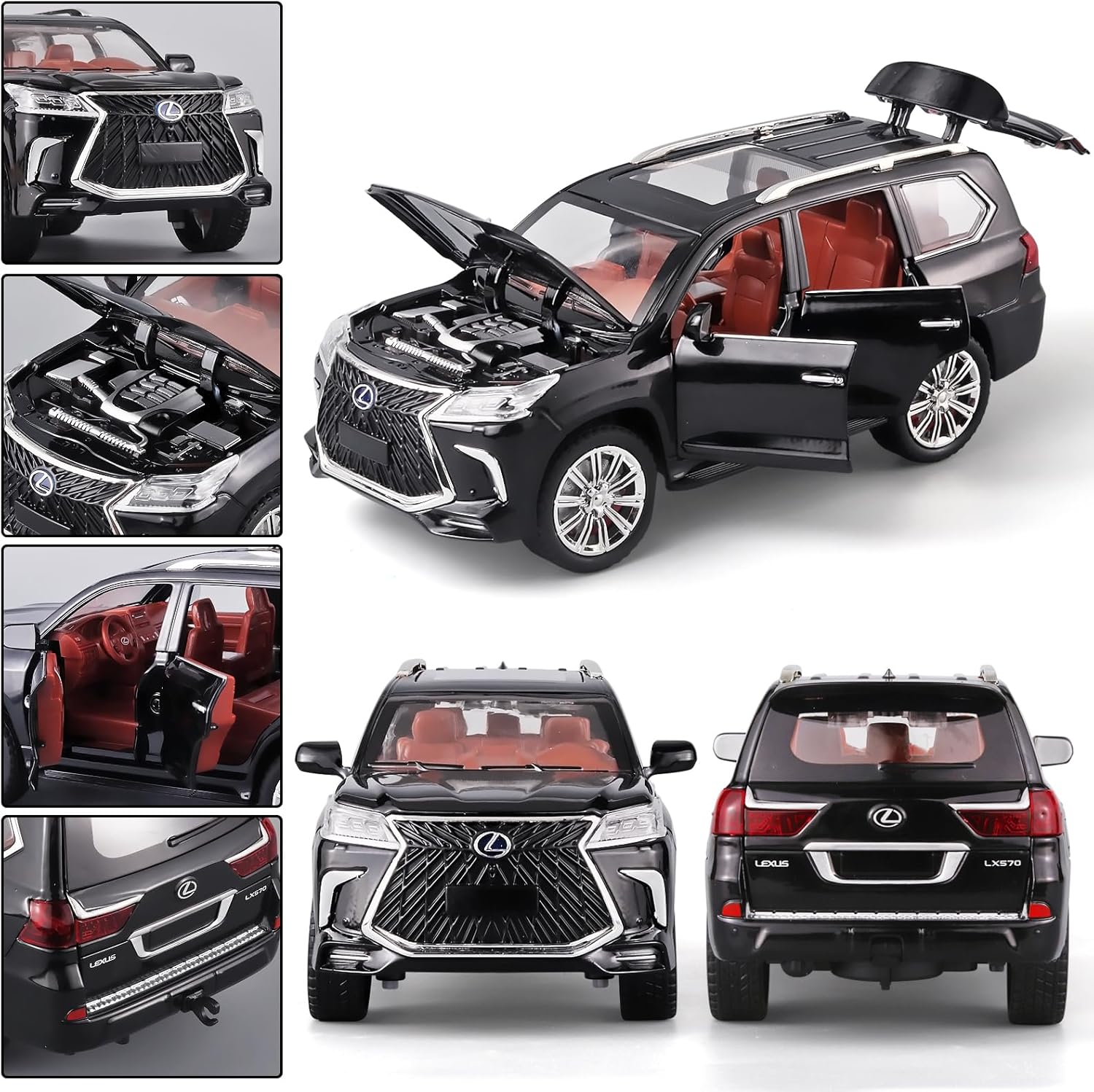 سيارة لكزس 570 فاخرة للطرق الوعرة من BDTCTK بمقياس 1/24، سيارة لعبة كبيرة من سبائك الزنك مع صوت وإضاءة كهدية للأطفال والأولاد والبنات (أسود)Dhs. 52.00