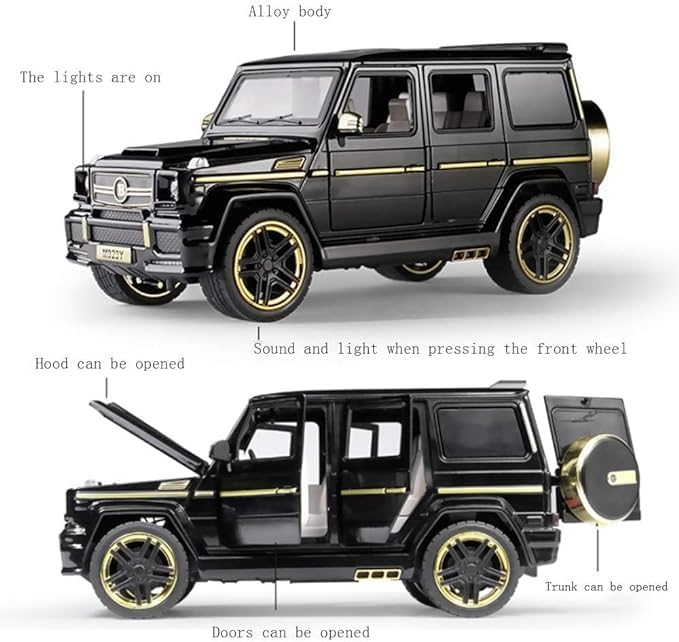 سيارة G65 مصبوبة قابلة للسحب بمقياس 1:24 مصنوعة من سبائك الزنك للأطفال مع صوت وأضواء حقيقية، هدايا عيد الميلاد للأولاد، مقتنيات مع بطاقة حاجزDhs. 69.00