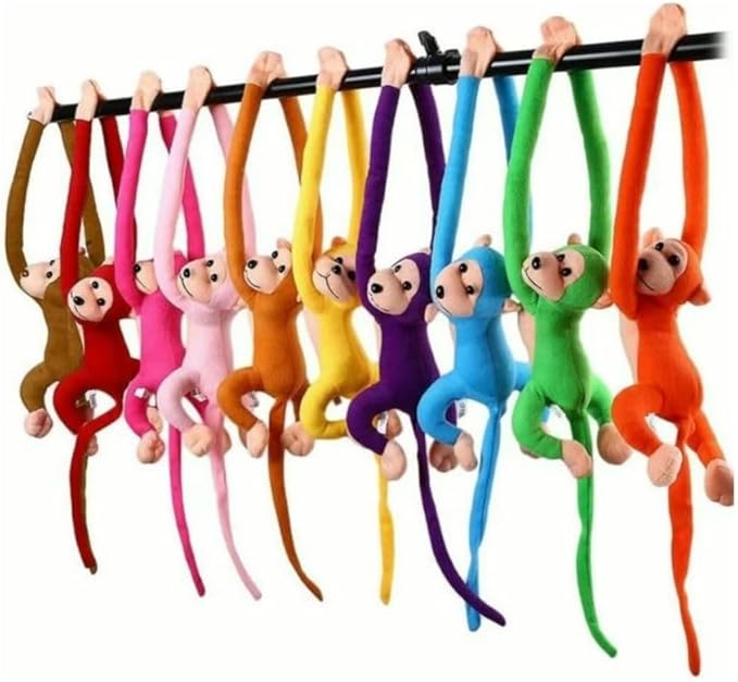 ألعاب قرد قطيفة ملونة، حيوانات محشوة ناعمة معلقة، مع ضوء للعين وصوت، مجموعة من 6 قطع - متنوعةDhs. 90.99