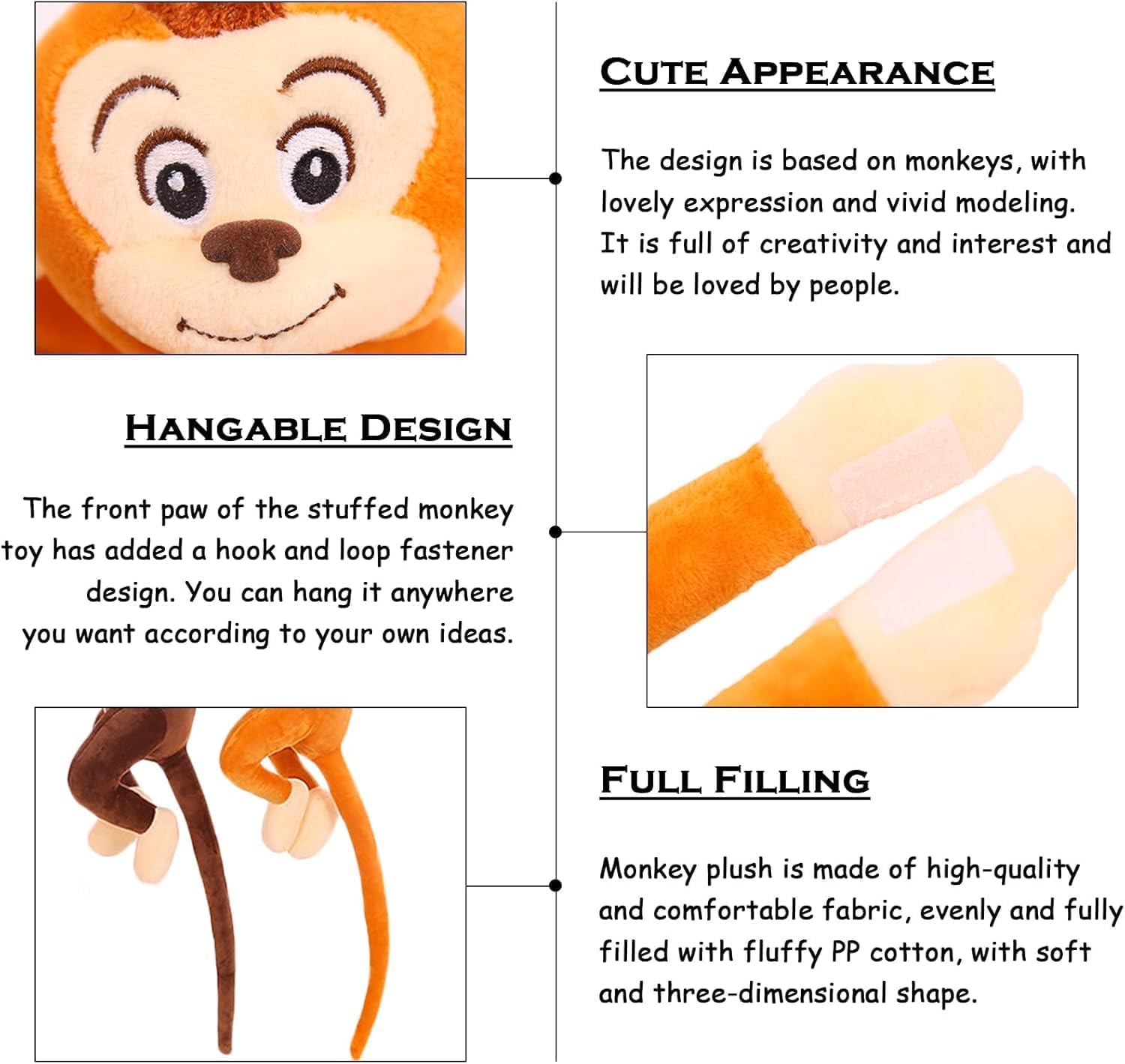 3 قطع من حيوانات القرد المحشوة المعلقة، لعبة قرد محشوة، هدية رائعة لديكور المنزل للأطفال مع الضوء والصوت - ألوان متنوعةDhs. 58.00
