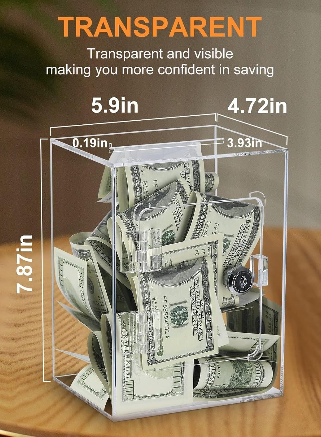 Eworld Clear Acrylic Money Bank with Lock and Keys, Classic Saving Box for Coins and Bills, Ideal for Kids and AdultsDhs. 47.15Dhs. 99.95