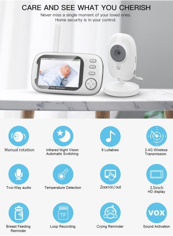 Wireless Baby Monitor 2.4G 3.5 Inch LCD Two Way Audio Talk Night Vision with Temperature Monitoring and Lullabies for BabyDhs. 199.00Dhs. 329.00