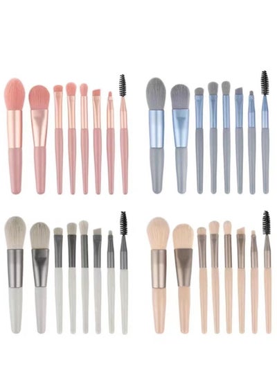 08 - مجموعة فرش مكياج، فرش مكياج صناعية فاخرة احترافية، ظلال عيون، بودرة أساس وأحمر خدود خفيفة، مجموعة فرش مكياج بمقبض بلاستيكي غير لامع وحقيبة لجمال النساء