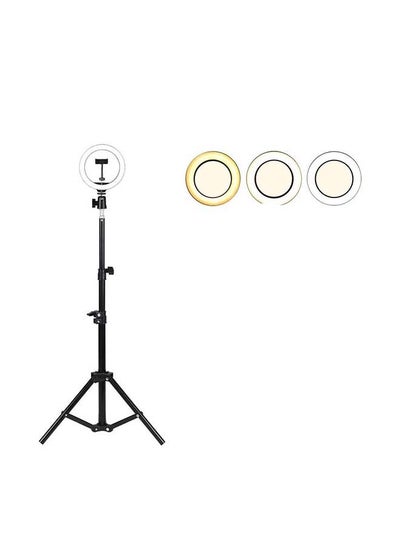 حلقة إضاءة مقاس 10 بوصة مع حامل ثلاثي القوائم باللون الأبيض