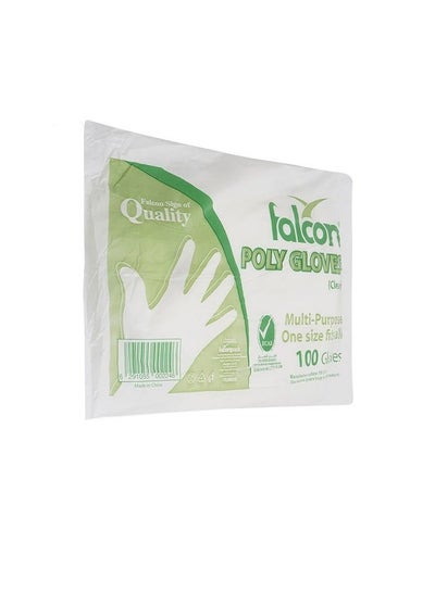 قفازات بولي متعددة الأغراض مكونة من 100 قطعة باللون الأبيض