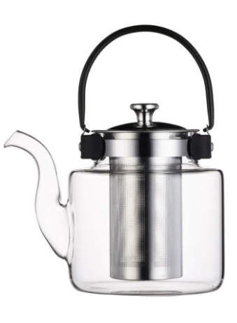 إبريق شاي زجاجي عالي البورسليكات سعة 1200 مل مع مصفاة شاي ومقبض من الفولاذ المقاوم للصدأ T-1200