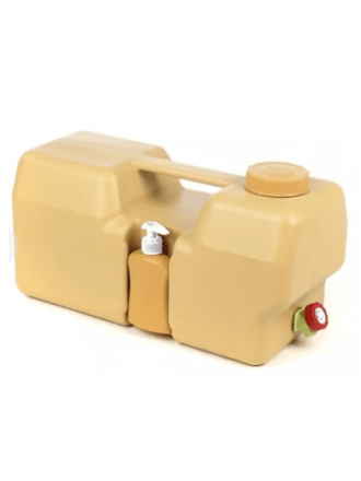 دلو تخزين مياه بلاستيكي خالٍ من مادة BPA سعة 20 لترًا للتخييم مع صنبور وزجاجة معقم لليدين