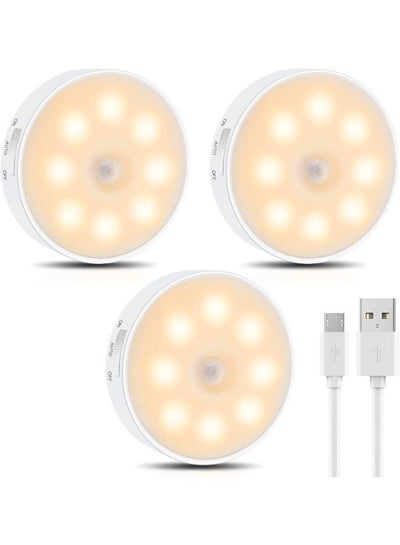 3 قطع مستشعر حركة 2 في 1 LED ضوء ليلي USB قابل لإعادة الشحن موفر للطاقة مصباح حثي ذكي للجسم لغرفة النوم والحمام والسلالم
