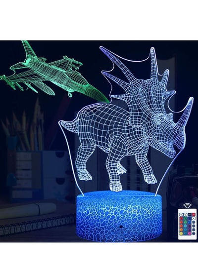 ضوء ليلي ثلاثي الأبعاد للأطفال ديناصور مقاتل 2 نمط مع جهاز تحكم عن بعد ولمسة ذكية 16 لونًا متغيرًا مصباح وهمي ثلاثي الأبعاد قابل للتعتيم ليلاً