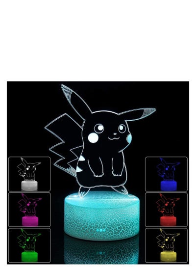 ثلاثية الأبعاد PikachuLED ضوء الليل مصباح طاولة بجانب السرير ، مصباح مكتبي للعناية بالعين قابل للتعتيم 7 ألوان تغيير تدريجي اللمس التبديل USB الجدول مصباح