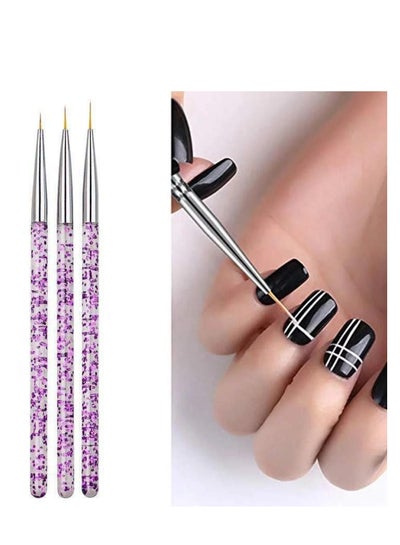 مجموعة من 3 فرش احترافية لفن الأظافر، أقلام تحديد، خطوط لضربات قصيرة، تفاصيل، مزج الخطوط الطويلة