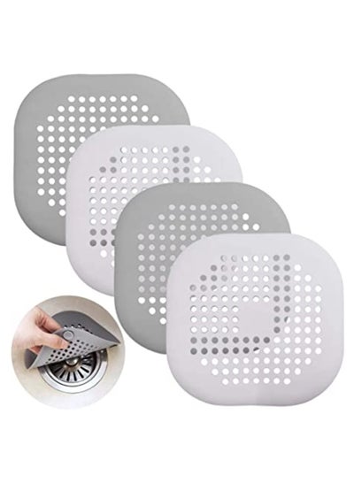 4 قطع من السيليكون المسطح لصيد الشعر مع كوب شفط ومصفاة حوض الاستحمام وغطاء تصريف حوض الاستحمام للمطبخ وحوض الاستحمام - أبيض ورمادي