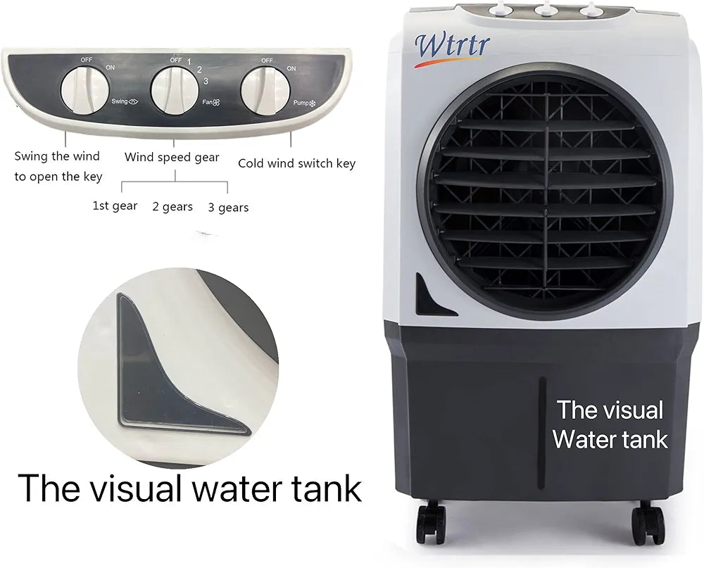 ✅The air-conditioning fan is cooled by physical water evaporation. When the wind blows, it is very cool. It is completely different from the principle of air conditioning. The effect of cold wind depends on the temperature of the water, and the cooler the water, the better the effect of cold wind. Without ice can cool down about 1-2 degrees, with ice can cool down about 5-6 degrees,the outlet can cool down about 6-10 degrees.