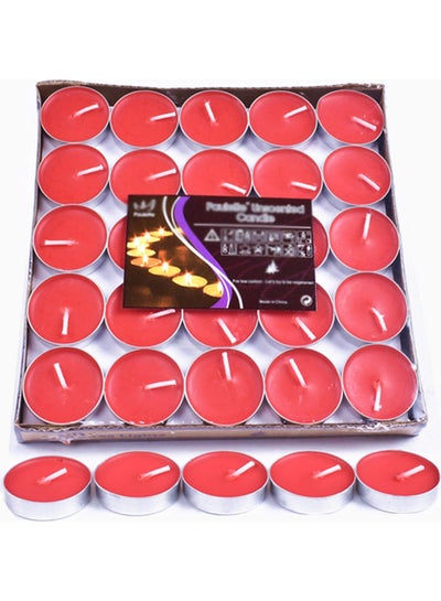 مجموعة 50 قطعة من شموع شموع صغيرة بدون دخان لمدة ساعتين، أحمر 18.00*2.50*18.00 سم