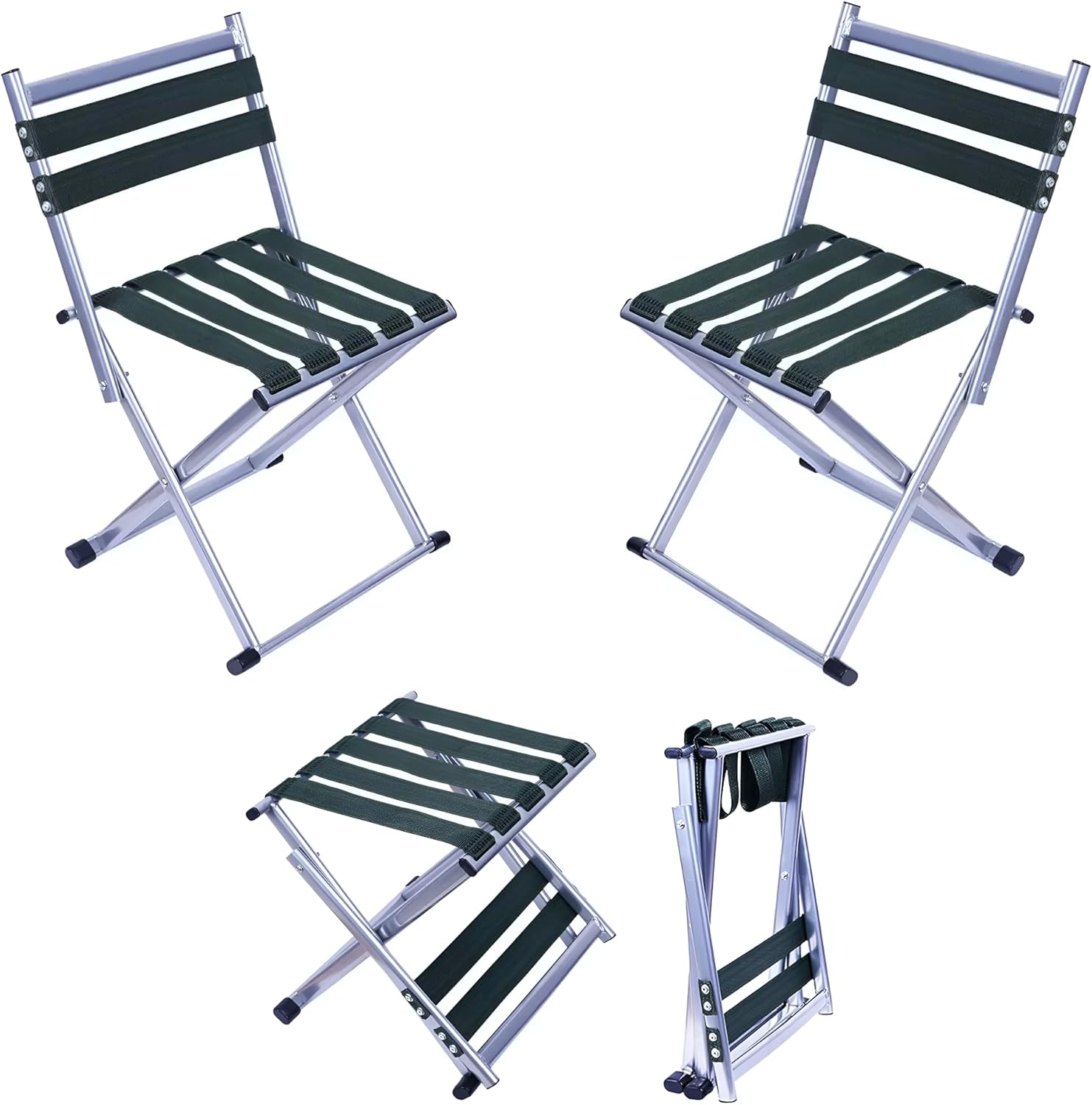 HEXARHEXAR 120 KG Capacity 2 in 1 Folding Chair and Stool for Adults Kids Travel Camping Garden Sitting Stool Collapsible Lightweight Adjustable Stool/Chair Thick Backrest Foldable Beach Chair (2 PCS SET)Dhs. 61.45