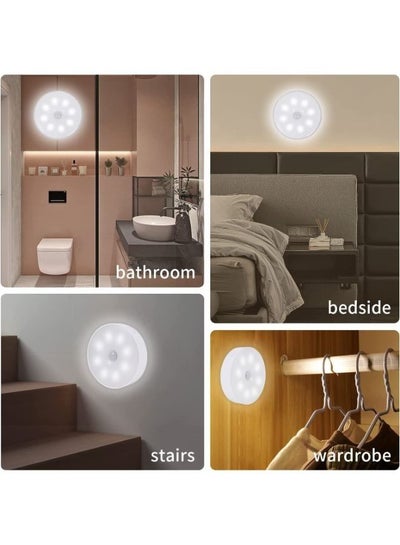 6 قطع مستشعر حركة ضوء ليلي داخلي قابل لإعادة الشحن صغير LED ضوء خزانة دافئ وأبيض لاسلكي نشط مستشعر ذكي أضواء خزانة تعمل بالبطارية لسلالم المدخل وغرفة النوم