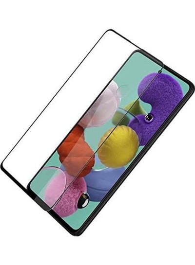 زجاج مقسى 9D لهاتف سامسونج جالاكسي A71 واقي شاشة غراء كامل أسود