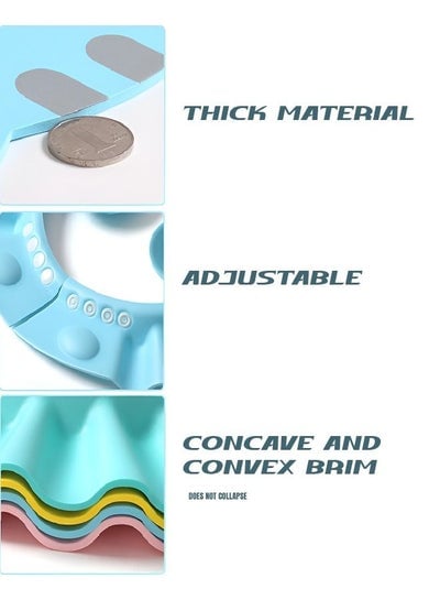 تمنع قبعة الدش ذات التصميم المبتكر دخول الماء والصابون إلى عيون أطفالك أثناء غسل شعرهم بالشامبو. لقد تم تصميمه لمنحهم تغطية وراحة تامة. 4 مثبتات قابلة للتعديل على قبعة الاستحمام للأطفال، مناسبة لمحيط رأس الأطفال 45-55 سم.، فقط قم بغسل حاجب حمام الطفل بالماء والصابون، حاجب الشامبو للأطفال الصغار لا يمتصه. الماء. يمنع غطاء رأس استحمام الطفل الشامبو والماء من دخول أذنيه أو عينيه أو فمه. يساعد على القضاء على خطر إصابة طفلك برهاب الماء والتهابات الأذن وجفافها، مما يسهل على طفلك الاستحمام! ومناسبة لتشذيب الشعر.,