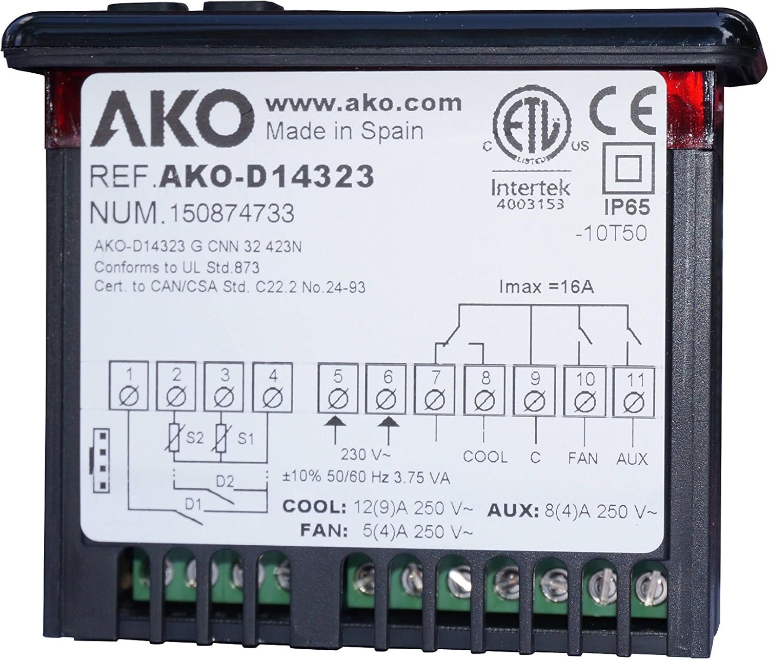 وحدة تحكم في درجة الحرارة AKO D-14323 بجهد 230 فولت | وحدة تحكم رقمية بديلة عالمية مع دورة إذابة تجميد قابلة للتعديل لخزائن عرض الطعام التجارية، والمجمدات الكبيرة، ومجمدات المطاعم