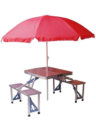 طاولة نزهة للتخييم قابلة للطي من الألومنيوم مع 4 مقاعد قابلة للحمل في الهواء الطلق والحديقة باللون الفضي