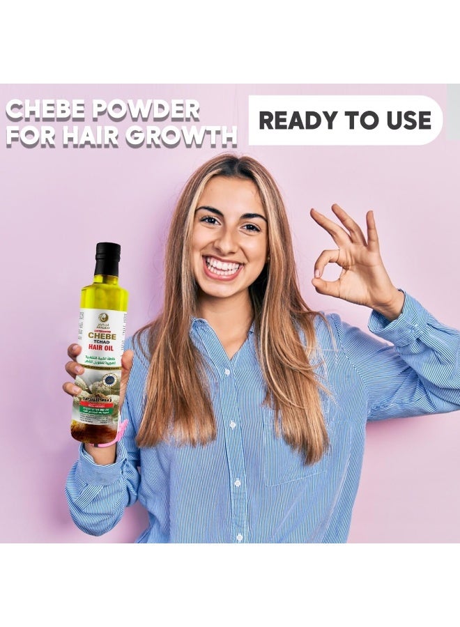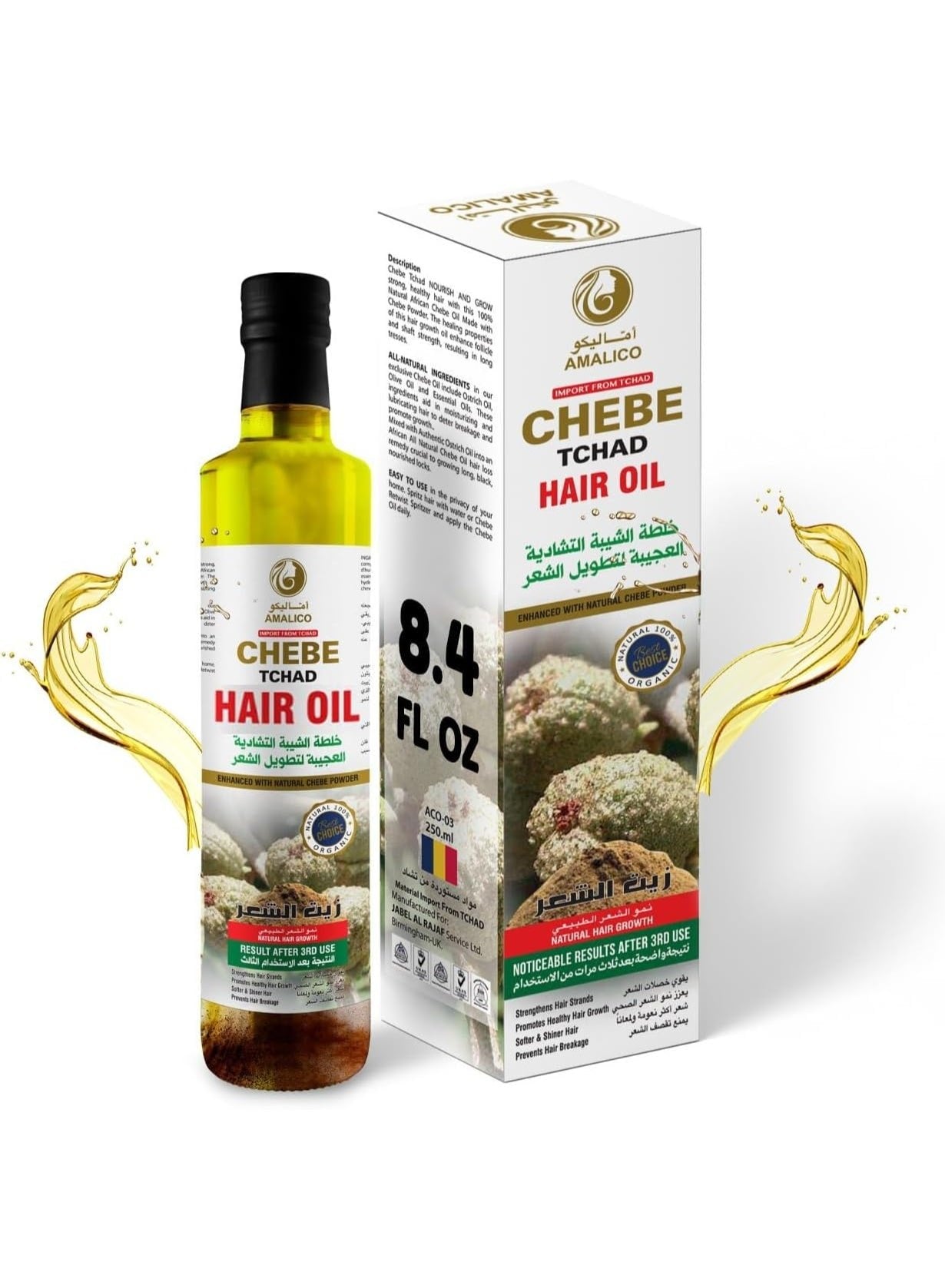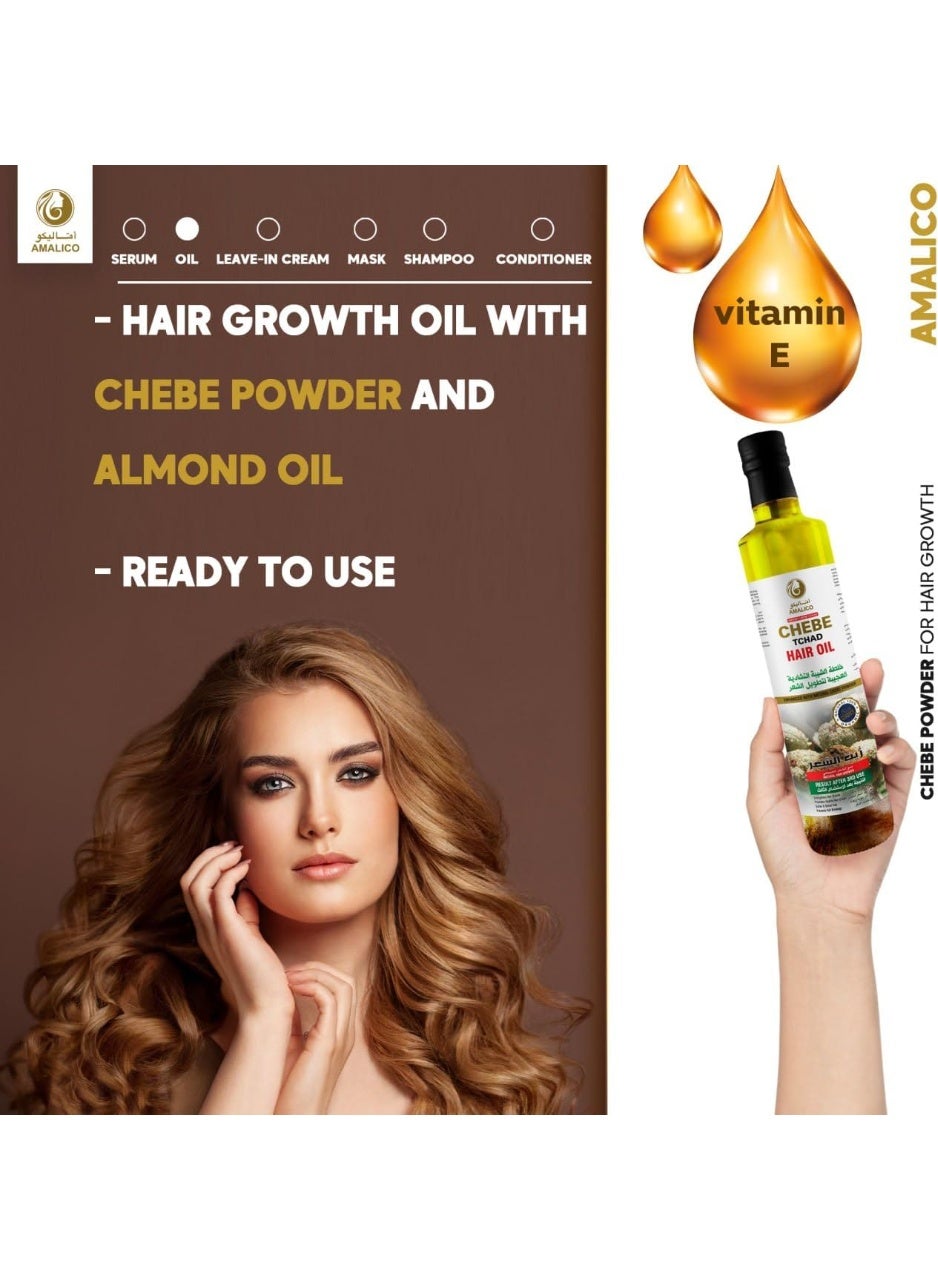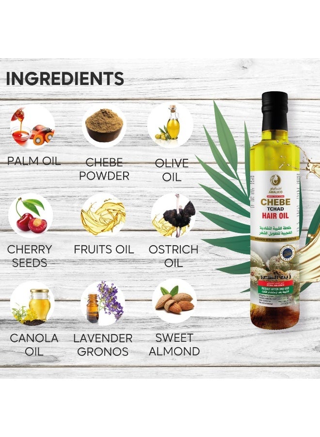 AMALICO Oil for Hair Growth with Chebe Powder - Ready to use Organic Oil for Scalp and Dry Damaged Hair - Natural Oil Infused with Canola, Palm, Ostrich and Olive Oil - 250 ML