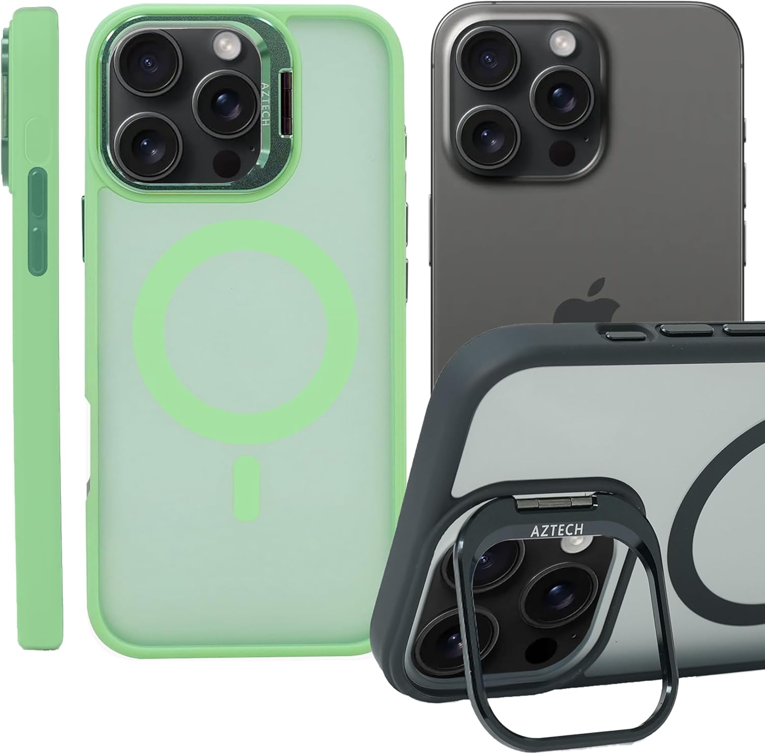 AZTECH for iPhone 16 Pro Case Compatible & MagSafe Supports Magnetic Wireless Charging Built-in Camera Ring Stand Scratch-Resistant Back Kickstand Cover for iPhone 16 Pro Classic Hybrid HaloLock