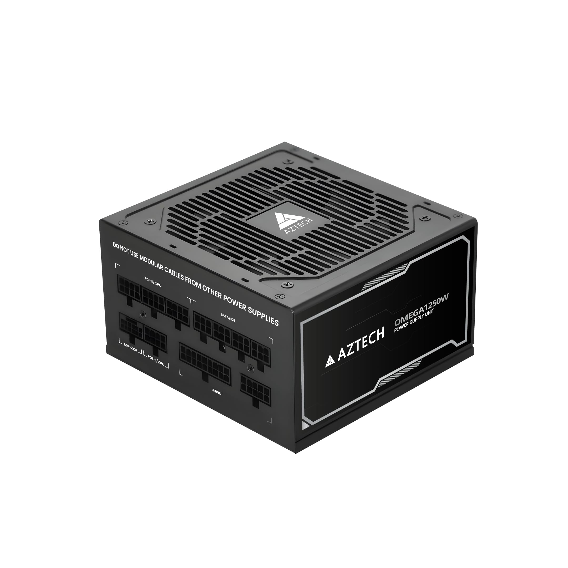 AZTECH OMEGA 1250W 80 Plus Gold ATX 3.1 & PCIe 5.1 Ready Fully Modular Power Supply Ultra‑Quiet Hybrid Fan PSU 120 mm, Japanese 100% 105 °C Caps, ZERO RPM Low noise Control RTX 40 PSU & Ryzen & Intel