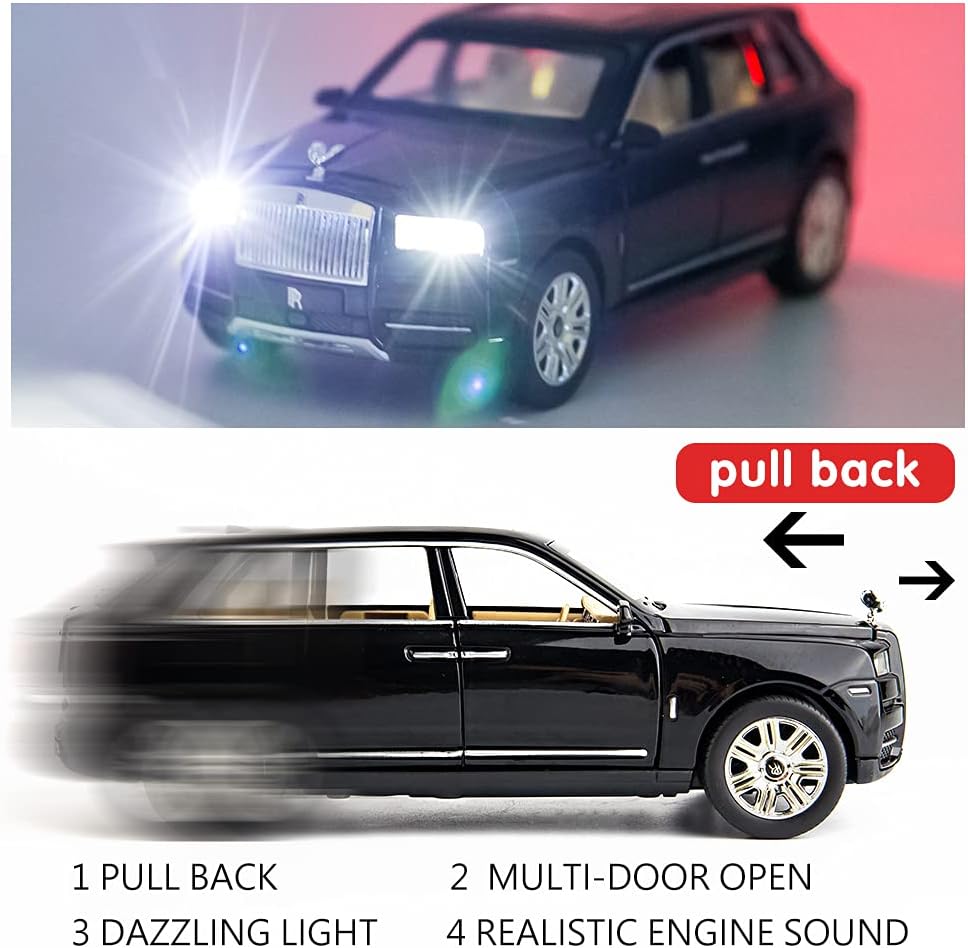 لعبة سيارة رولز رويس كولينان الرياضية متعددة الاستخدامات بمقياس 1/24 من BDTCTK، سيارات مصبوبة من سبائك الزنك مع صوت وضوء للأطفال والأولاد والبنات (أسود)