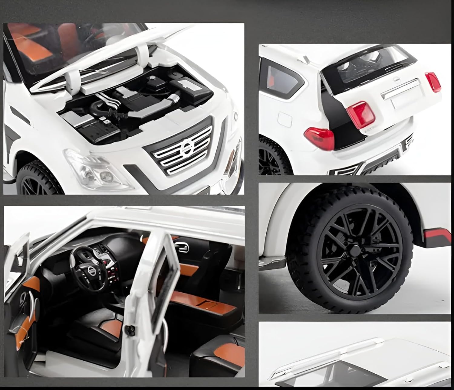 سيارة BEYTOR 1:24 N-issan Patrol Diecast Alloy مع خاصية السحب للخلف والموسيقى والصوت - أبيض