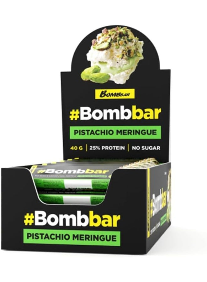بار بروتين بومبار بالشوكولاتة 40 غ، 12 قطعة في علبة - مرنغ الفستق