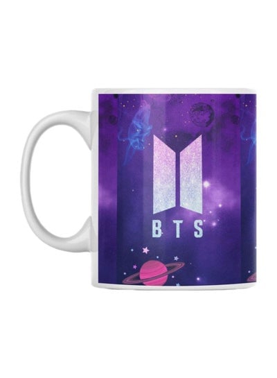 كوب مطبوع عليه كلمة BTS أبيض/أرجواني 350 مل