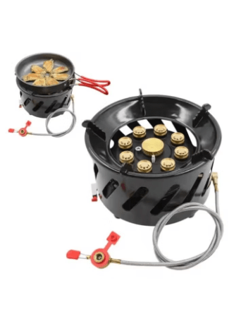 موقد تخييم مقاوم للرياح ومحمول مصنوع من النحاس للاستخدام الخارجي مزود بـ 9 شعلات، ملحقات طهي خارجية للتخييم والمشي لمسافات طويلة