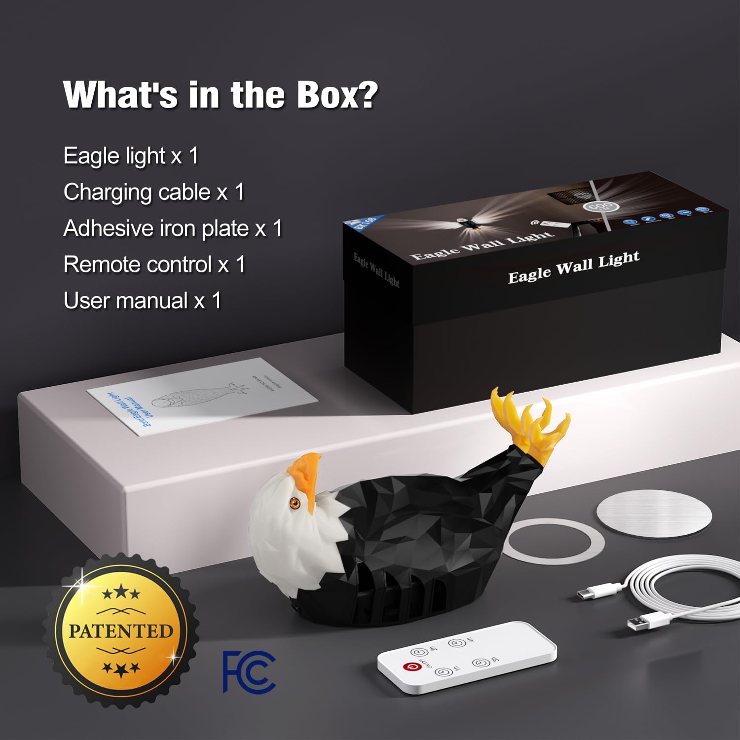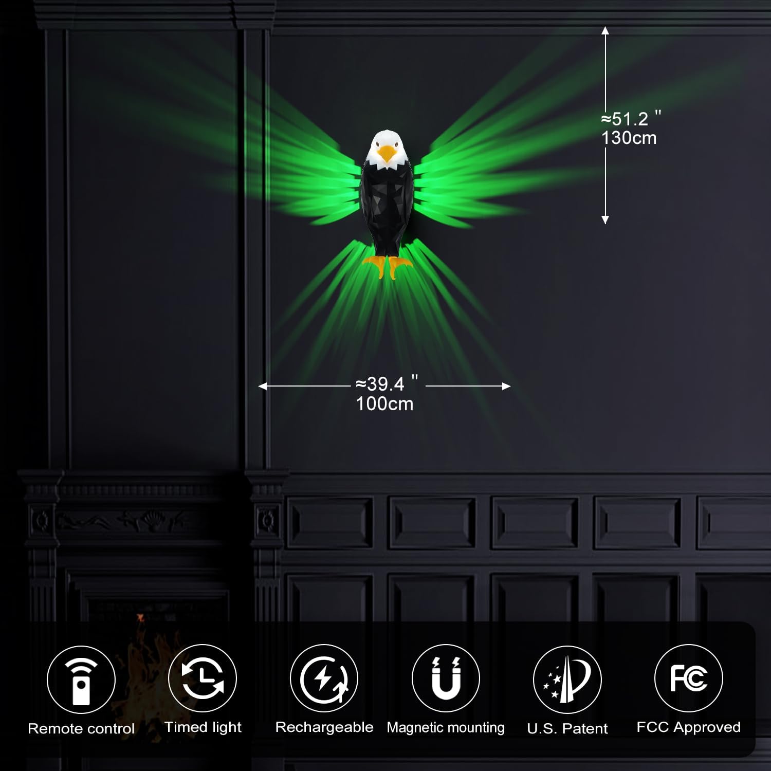 مصباح حائط على شكل نسر أصلع من شاميز، مصباح ليلي على شكل نسر أمريكي مع جهاز تحكم عن بعد، مصباح حائط مغناطيسي على شكل نسر لغرفة النوم، غرفة المعيشة، الرواق، يعمل بالبطارية وقابل للإزالة مع خاصية الشحن.