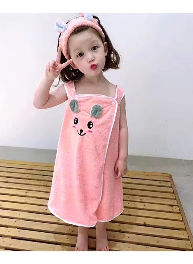 Children's Polyester Bathrobe with Headband Suitable for Home Use Small size [suitable for height 90-125 cm]