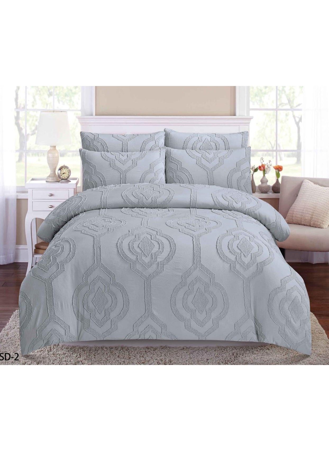 طقم لحاف مريح من 6 قطع، مقاس كينج، قطني، رمادي، مطرز، فاخر