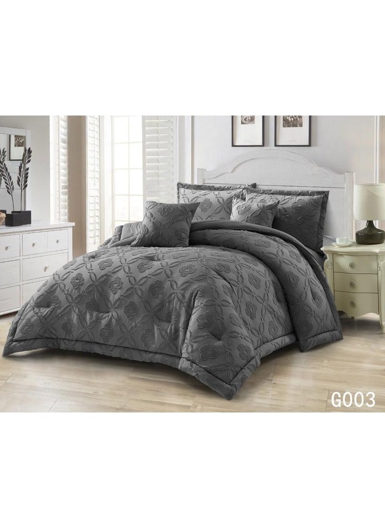 طقم لحاف مريح فاخر مطرز من 6 قطع، قطن، مقاس كينج، رمادي
