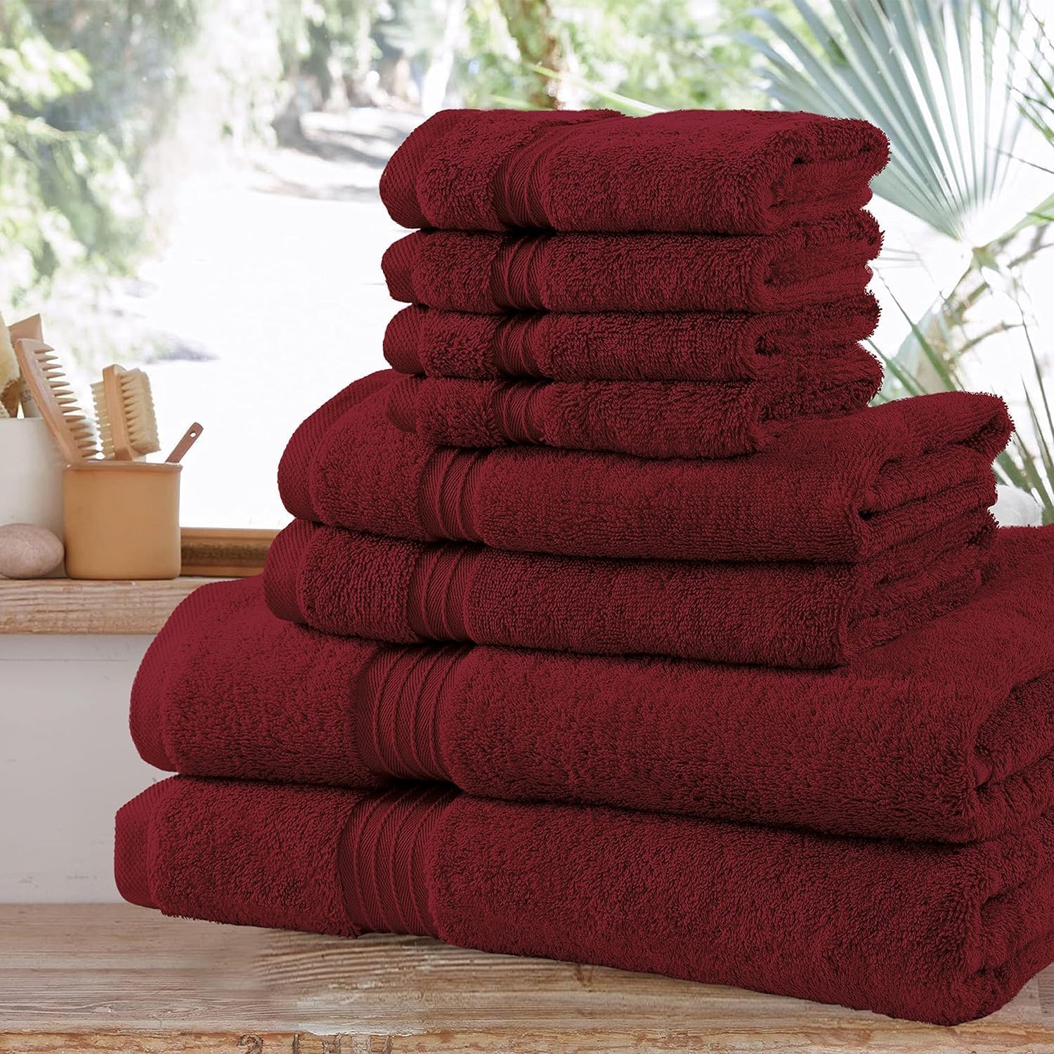 طقم مناشف مريح، 8 قطع، مصنوع من قطن ممشط 100%، 550 جرام لكل متر مربع، عالي الامتصاص - عنابي