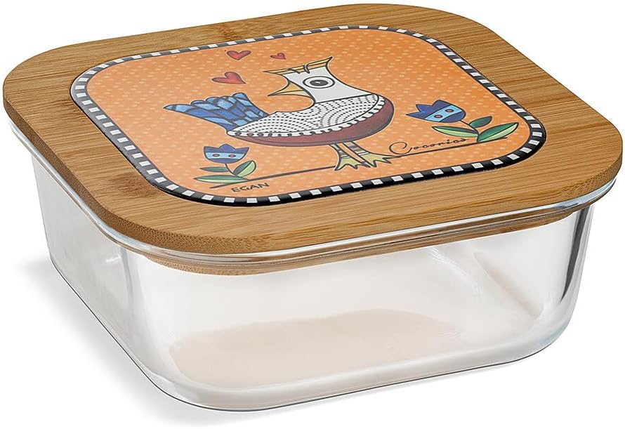 حاوية كوكوريكو برتقالية 18×7.5 سم – زجاج، خيزران، وسيراميك