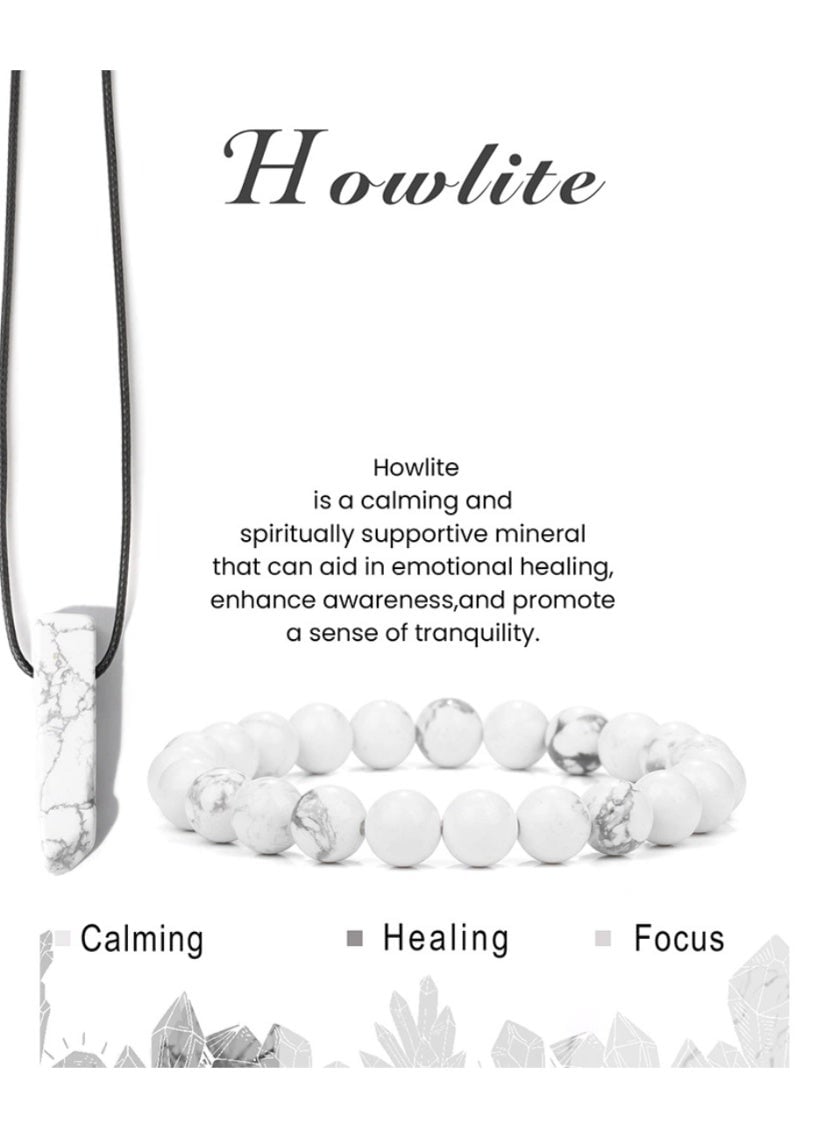 Crystal Necklace and Bracelet Combination Set Howlite Calming Healing Focus Beaded Jewelry