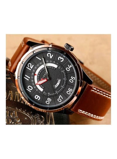 ساعة يد بسوار جلدي أنيق للرجال من كورين 8267 - بني/أزرق