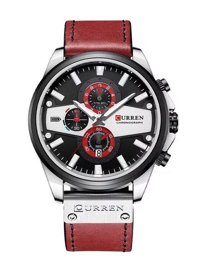 ساعة كورين 8394 للرجال كاجوال كوارتز جلدية كرونوغراف - أحمر/أسود